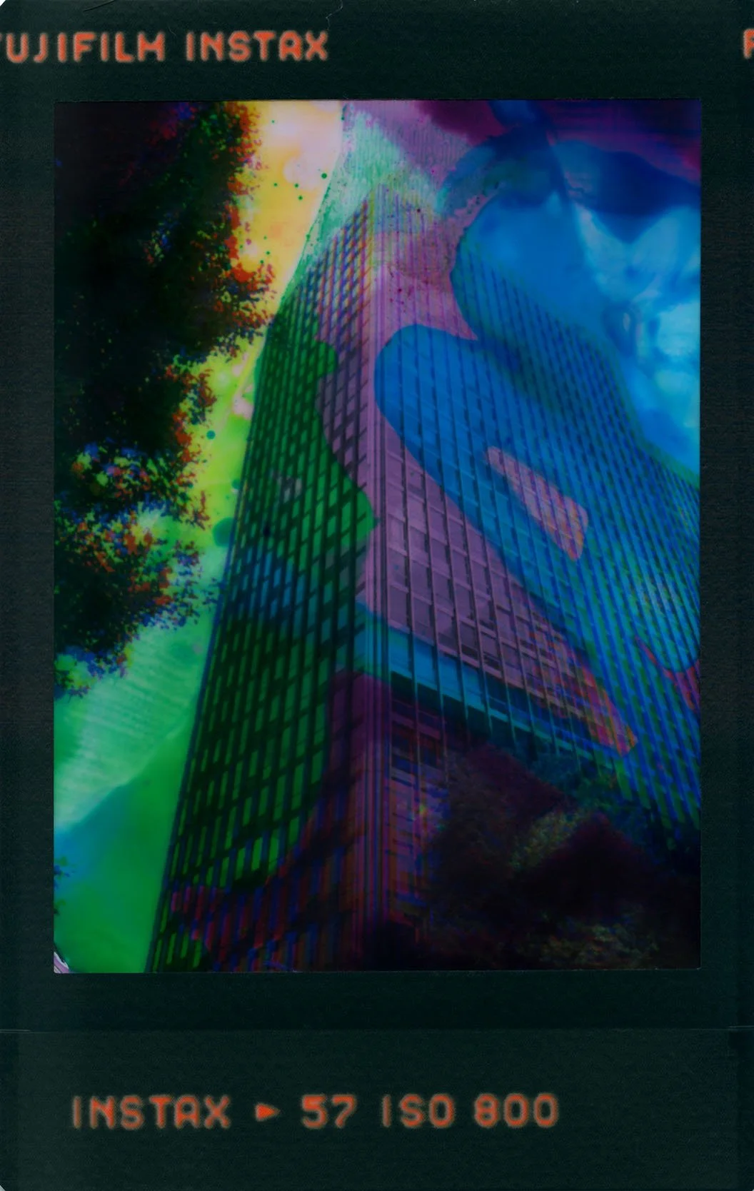 Photography | Scan of Fuji INSTAX Mini print | 1. Emulsion painted with Sailor Ink Studio “141” & “160” ink | Archival pigment print on glossy Metallic